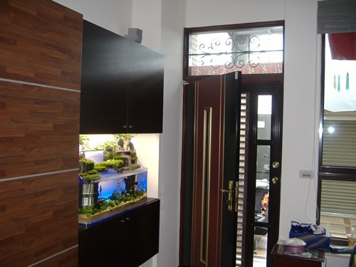 3尺扁缸(壁掛式)訂作魚缸,蔣姓乒乓球國手,因為要常出國比賽,傳統魚缸不容易照顧,所以選購本公司產品。